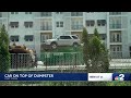 何が起きてる?ゴミ箱の真上にバランスよく車が駐車されているのを見てびっくり
